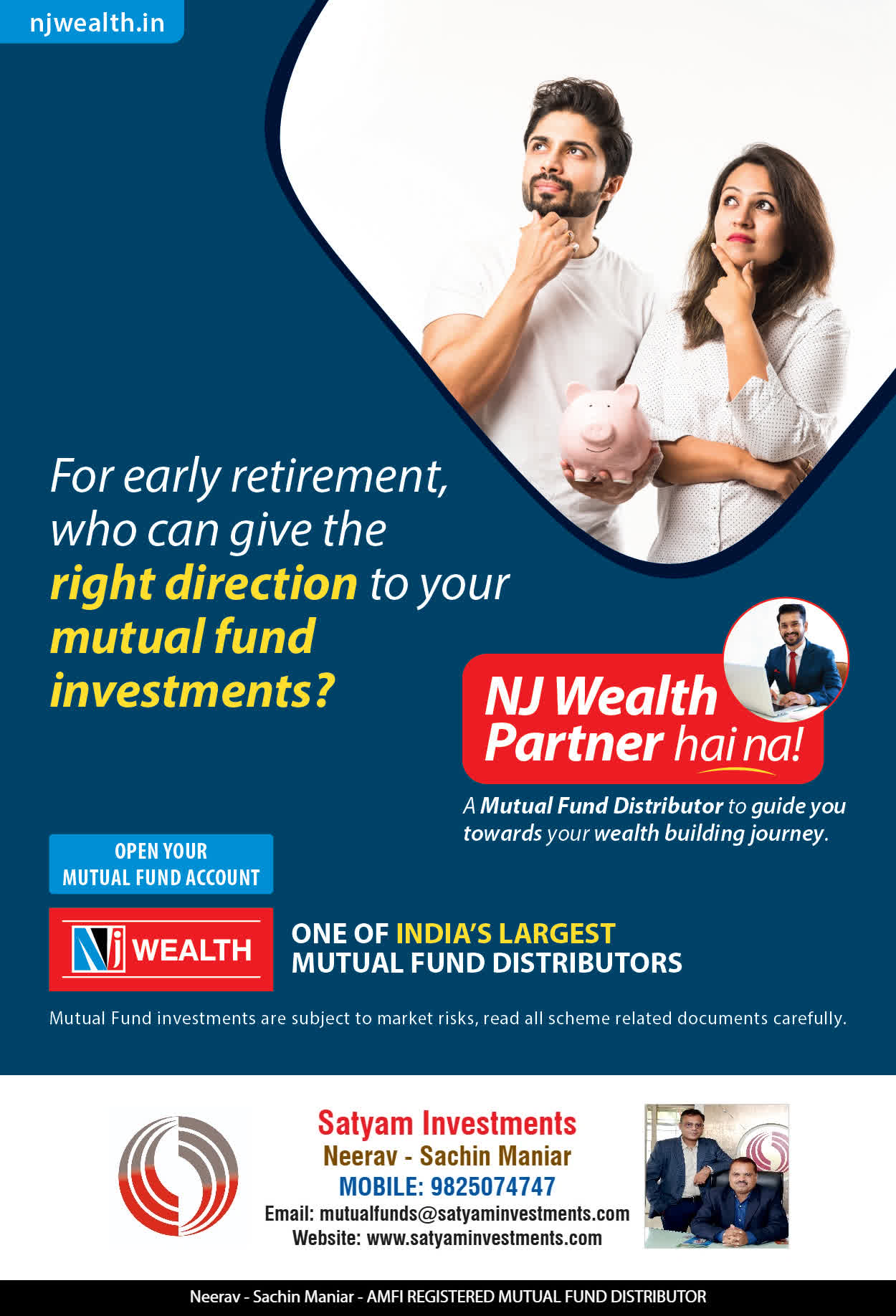 Satyam Investments is a leading Mutual Funds, Insurance and other Financial Products Distributor in Gujarat since 1963.